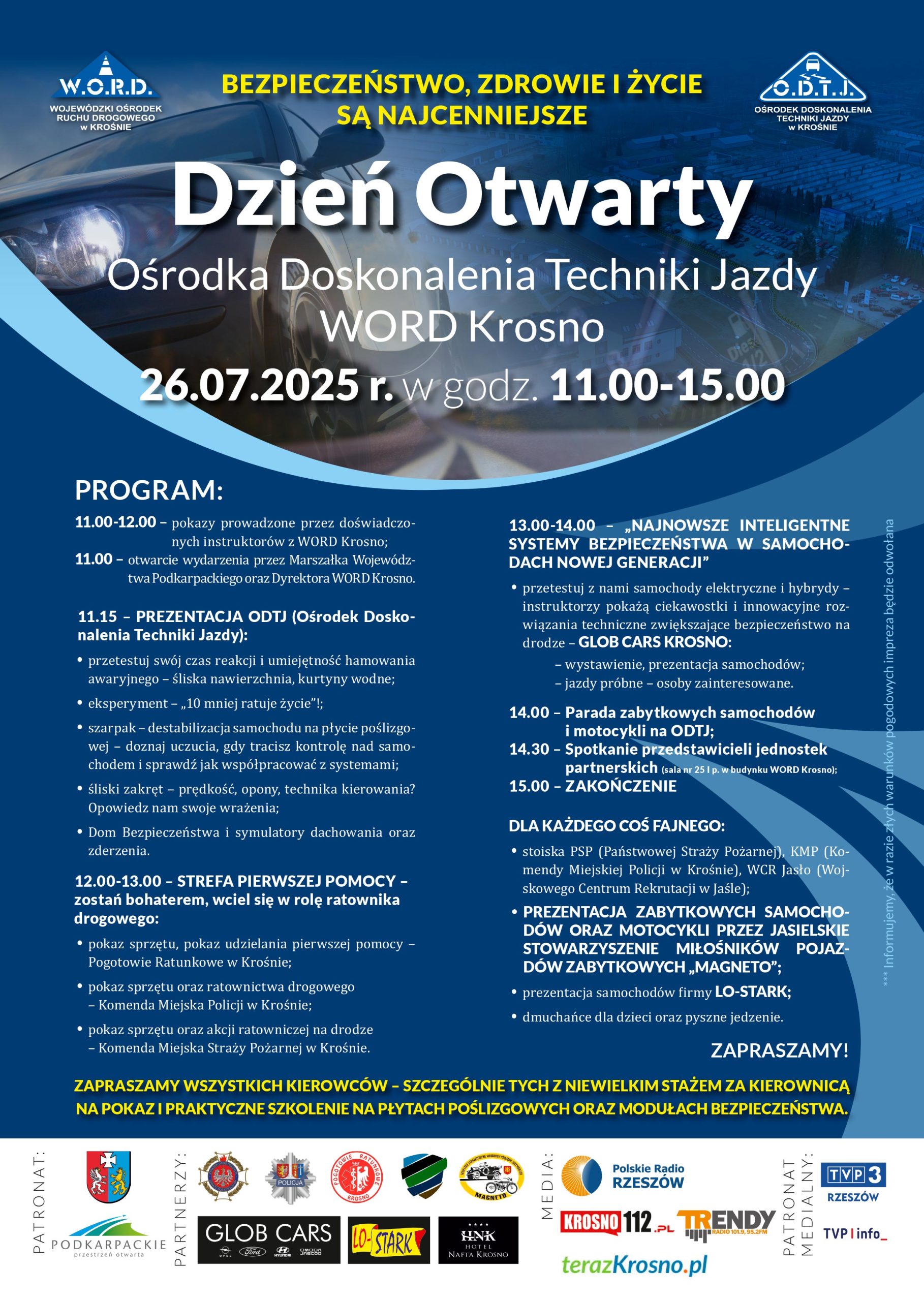 Dzień Otwarty Ośrodka Doskonalenia  Techniki Jazdy Word Krosno 26.07.2025 r. w godz. 11.00 – 15.00