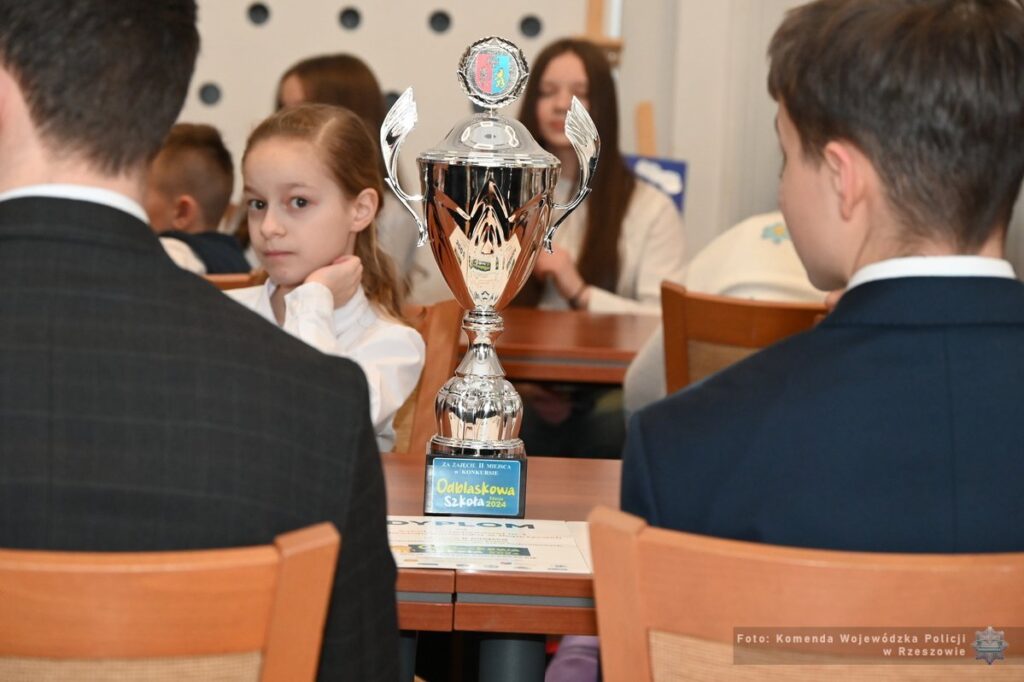 W dniu 29.01.2025 r. w auli Komendy Wojewódzkiej Policji w Rzeszowie miała miejsce uroczystość finalizująca tegoroczną edycję ogólnopolskiego konkursu „Odblaskowa szkoła” adresowanego do szkół podstawowych. Celem konkursu jest przede wszystkim poprawa bezpieczeństwa w ruchu drogowym dzieci i młodzieży.